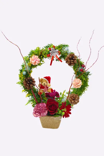 クリスマスシーズンをお洒落に演出するフラワーアレンジメントを楽しく作ります。