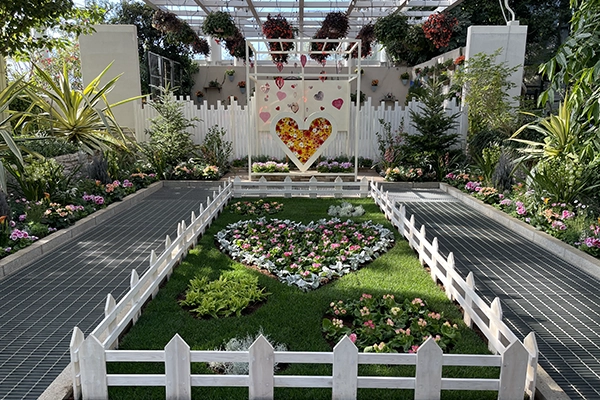 バレンタインデーには男性から女性に花を贈りましょう。華やかなガーベラ(切り花)を使った幸せいっぱいのガーデンです。※浜松市内のガーベラ生産農家とのコラボレーション展示です。